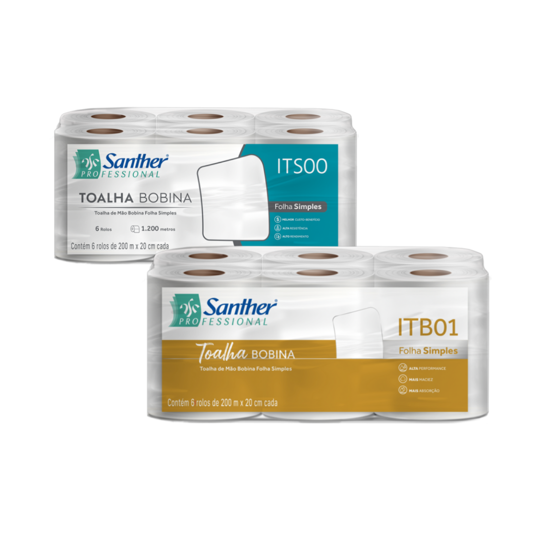 | Em bobina | Restaurantes, escolas | Alta capacidade de reposição | Consumo excessivo por folha |