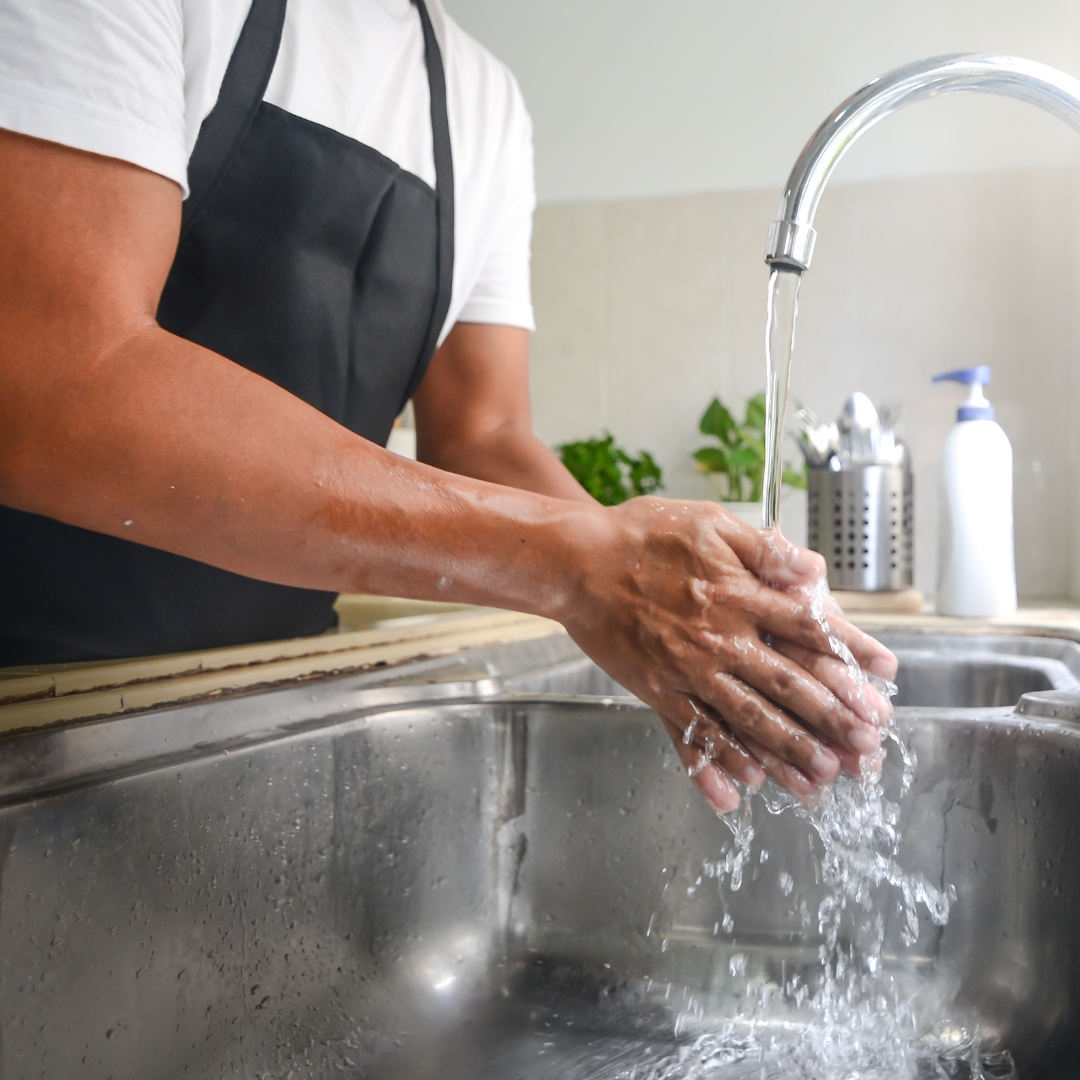 O ideal é que colaboradores lavem as mãos com sabão e água por pelo menos 20 segundos, especialmente antes das refeições, após usar o banheiro e depois de tocar superfícies de uso coletivo. Quando não houver pia disponível, o uso de álcool em gel 70% é uma alternativa eficaz.