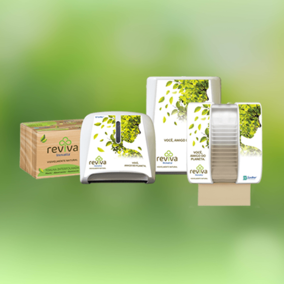Com papéis higiênicos e toalhas fabricados a partir de fibras recuperadas, a linha Reviva alia qualidade e sustentabilidade, atendendo aos critérios de compras responsáveis exigidos em projetos com foco em ESG.