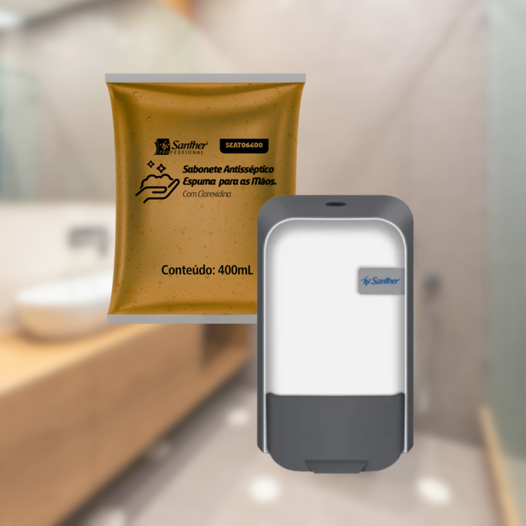 Um bom exemplo de como unir qualidade e praticidade é o SEAT06400 – Sabonete Antisséptico Espuma Santher Professional. Esse sabonete bactericida em espuma garante não apenas a eliminação de micro-organismos, mas também uma sensação de suavidade e cuidado com a pele. Para potencializar a economia e a eficiência, a combinação com a DQF20 – Saboneteira para Sabonete Espuma Quartz Santher é a escolha perfeita. Essa saboneteira moderna controla a dosagem do produto a cada acionamento, evitando desperdícios e garantindo que todos os colaboradores tenham acesso à quantidade correta para a higienização adequada das mãos.